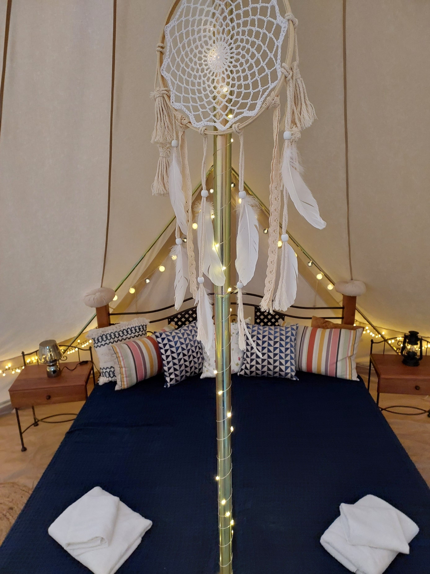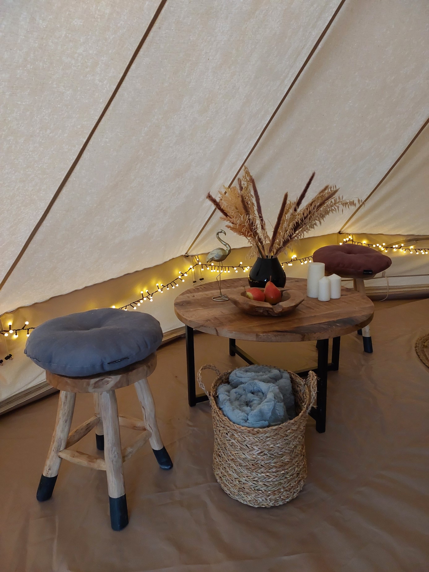 Dopřejte si nevšední zážitek z Vašich cest a ubytujte se v našich glampingových stanech s dechberoucím výhledem na vrcholky Lužických hor. Naše stany nabízejí vše k Vašemu pohodlí a naleznete zde velkou manželskou postel, dánský karup, plynový gril, houpací síť, ledničku, zásuvky, indukční vařič a další vybavení pro vaše případné vaření. Samozřejmostí je i přívod pitné vody z naší studny nebo možnost ochladit se v horkých letních dnech v solární sprše.
